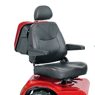 Enjoy the ride with the Afiscooter S4’s luxurious orthopedic captain’s seat, designed for long-lasting comfort and easy boarding.It swivels for easy access and comes in three sizes (20”, 22”, and 24”) to fit your preference. The seat’s high back and adjustable armrests keep you supported on long trips, while the full suspension absorbs bumps and shocks from rough terrain.Control and Safety