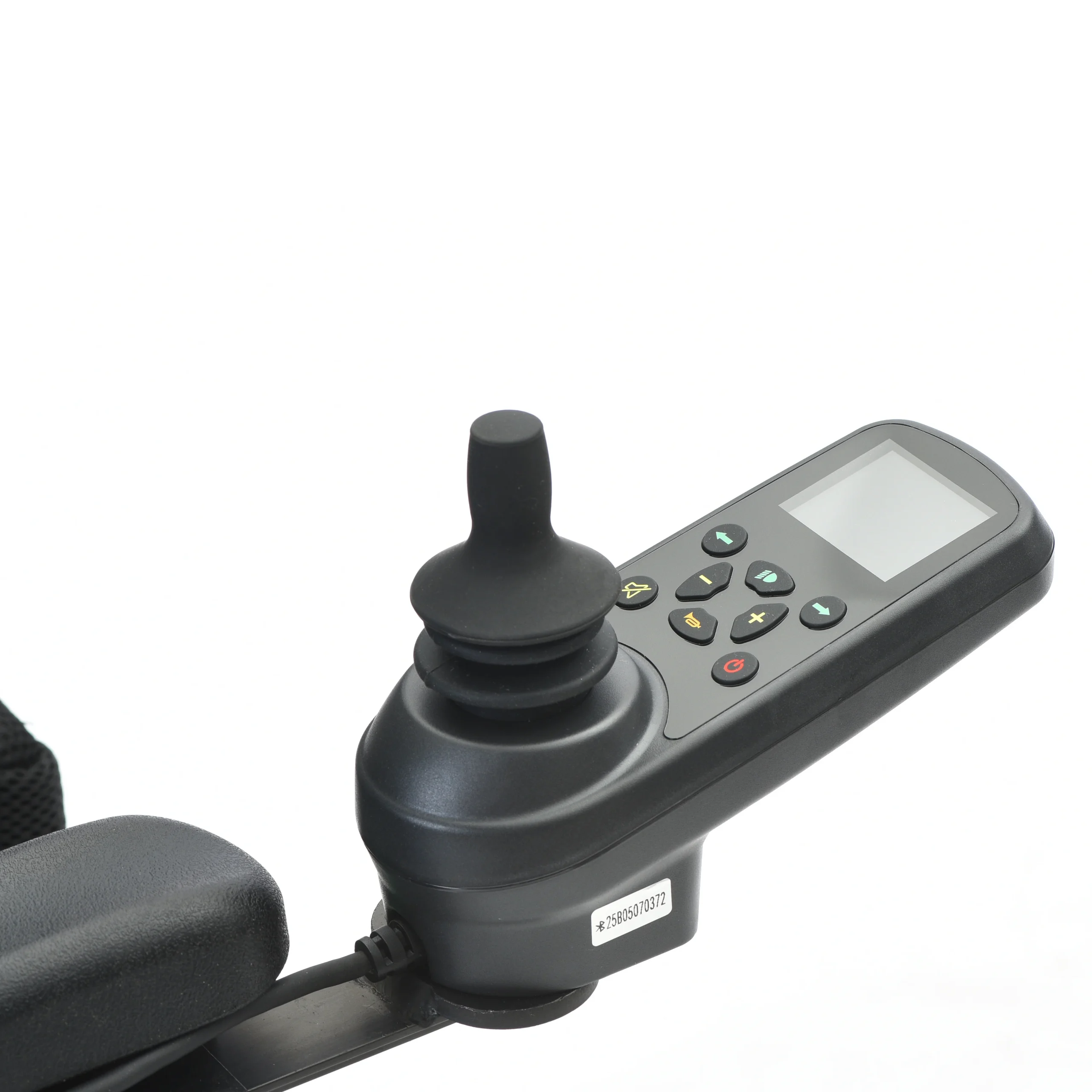 Comes with a joystick for easy maneuvering and a Bluetooth remote control that allows caregivers to operate or fold the chair from up to 10 yards away. A charger is included for convenient recharging.