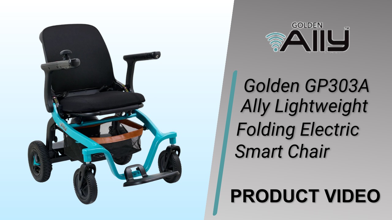The Golden Technologies Ally GP303 is a lightweight and portable power wheelchair made for daily use. With its 330 lbs weight capacity and compact foldable frame, it is one of the easiest power chairs to take on trips, store in a car, or keep at home without taking up much space.