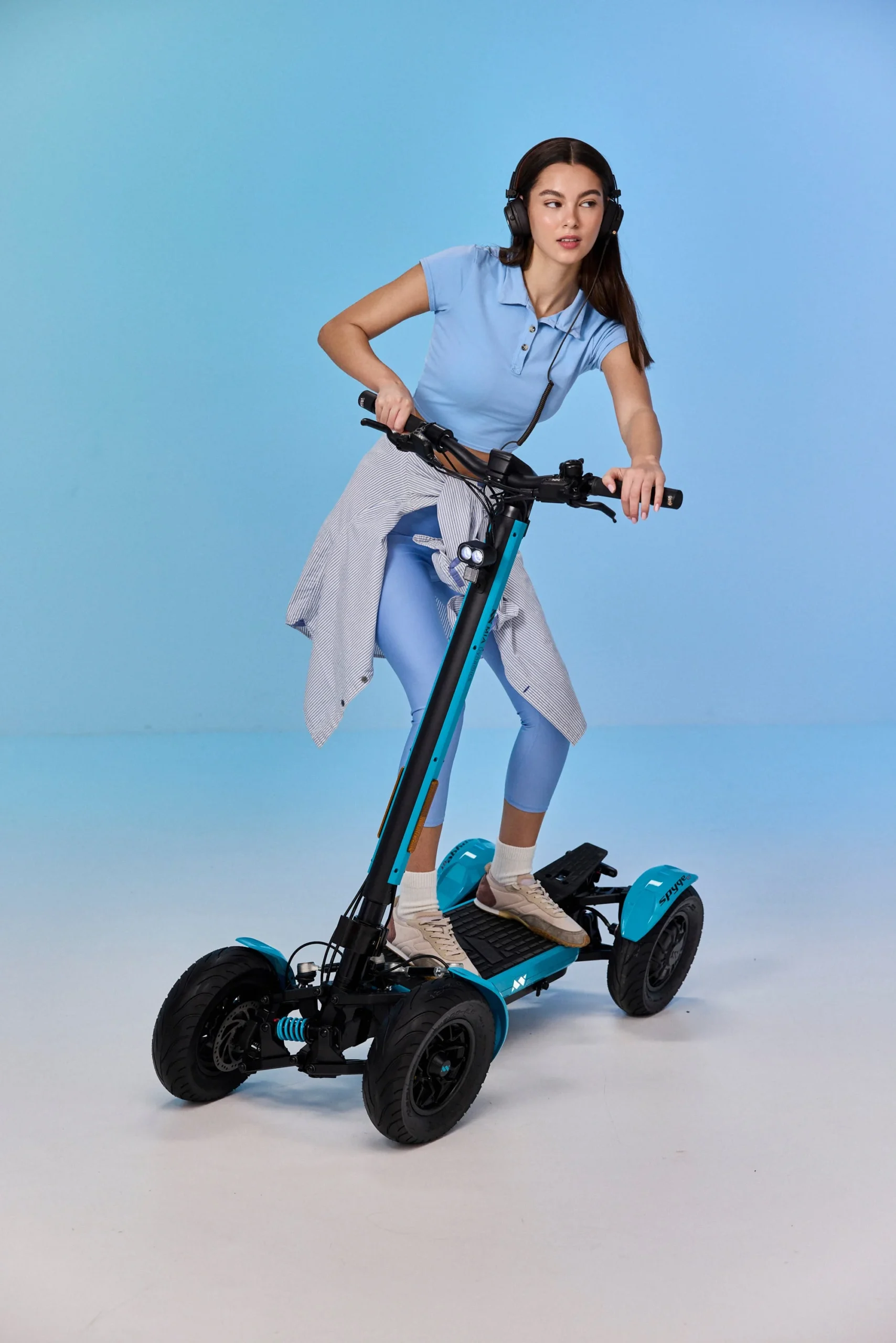 The MIA SPYQE (2X4) is built for urban commuters who need a dependable, stable ride through city environments. Combining the balance of four wheels with scooter agility, it’s a smart solution for navigating pothole-strewn sidewalks or crowded streets.