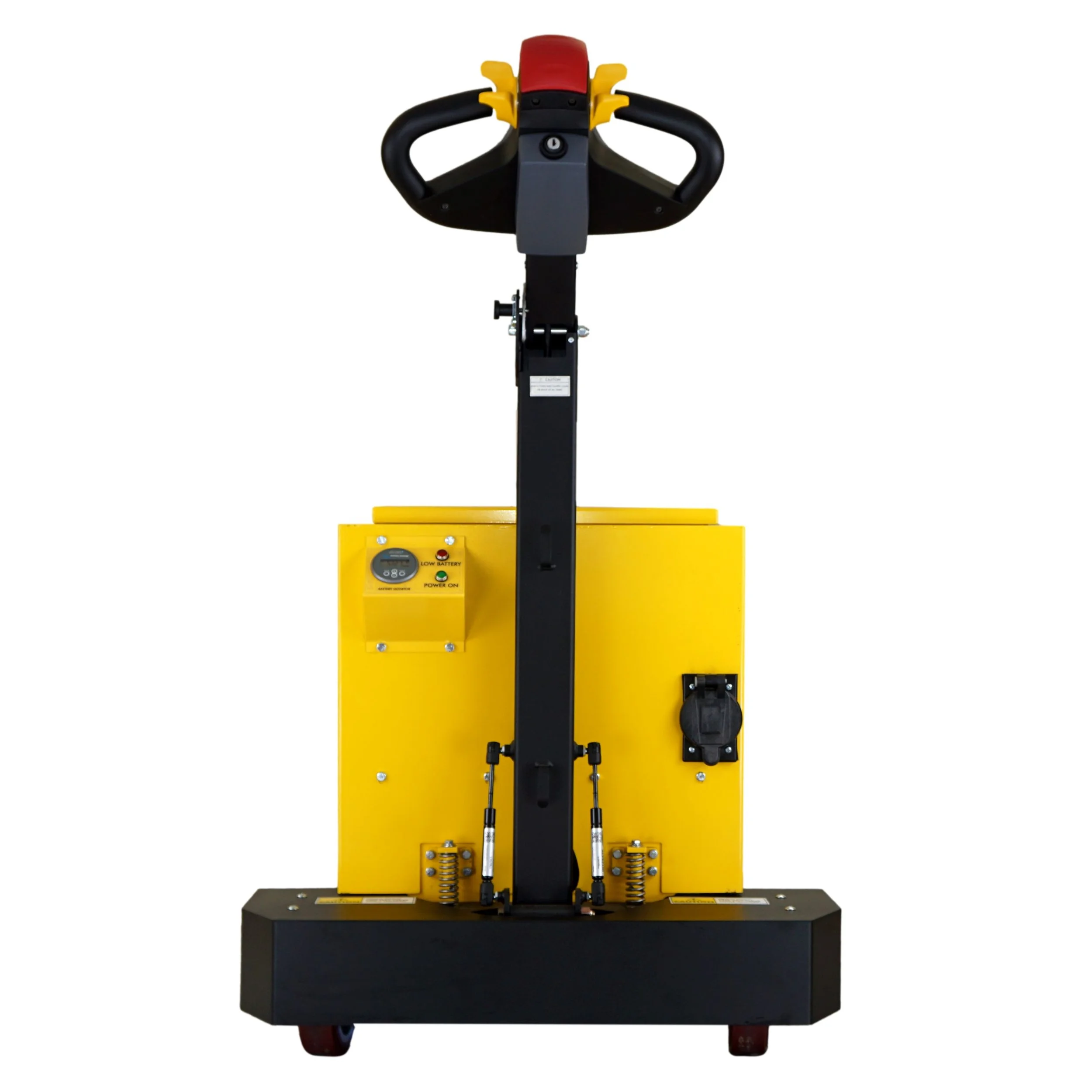 Operators benefit from regenerative braking, an automatic holding brake, emergency stop, and jog button for safe hitching. The ergonomic handle ensures smooth speed control in forward and reverse.
